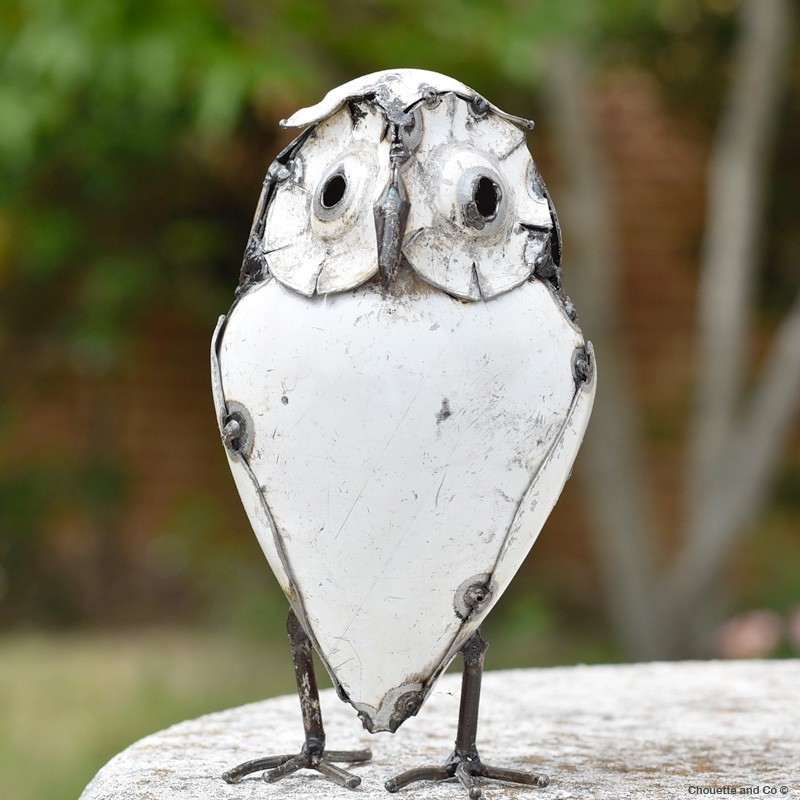 Hibou blanc gros yeux réalisé en métal recyclé