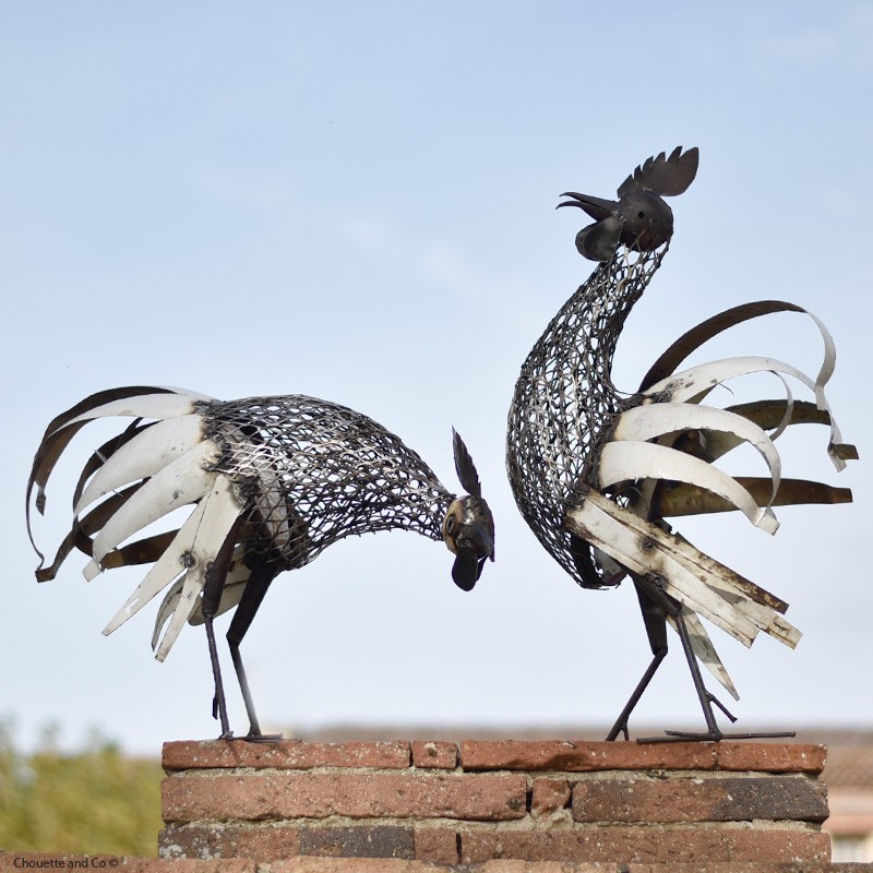 - : Placez simplement votre animal en extérieur et profitez en tout au long des années! Comme le temps passe, il s'oxydera ce qui ajoutera à son charme . Vous pouvez aussi appliquer une couche de vernis antirouille pour métal, une fois par an suffit.