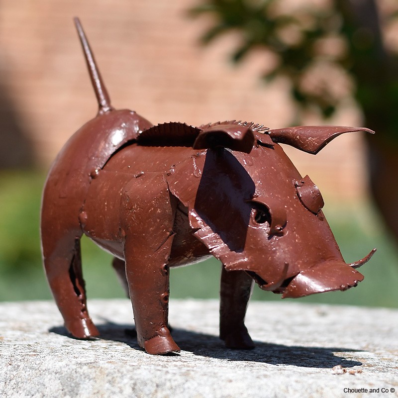 Joli sanglier en métal recyclé blanc, pour apporter un peu d'Afrique à votre déco.