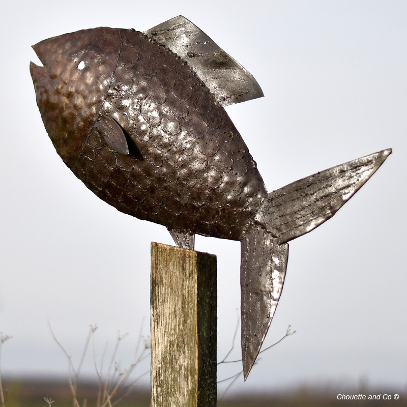 Poisson grand modèle en métal recyclé, ajoutez un coté aquatique à votre décoration.