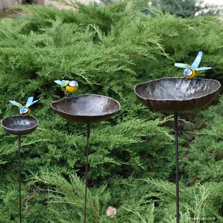 Tuteur mangeoire ronde faite main en métal recyclé.